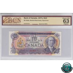 BC-49aS 1971 Bank of Canada SPECIMEN $10, Beattie-Rasminsky, S/N: DA0000000 BCS Certified CUNC-63 Original (#241)