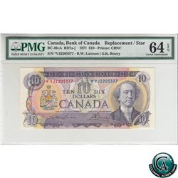 BC-49cA 1971 Bank of Canada Replacement $10, Lawson-Bouey, S/N: *VJ2205377 PMG Certified CUNC-64 EPQ!