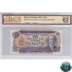 BC-49cA 1971 Bank of Canada Replacement $10, Lawson-Bouey, S/N: *TT2352583 BCS Certified CUNC-62 Original.