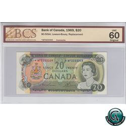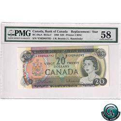 Bc-50aA 1969 Bank of Canada Replacement $20, Beattie-Rasminksy, S/N: *EM2964792 PMG AU-58.