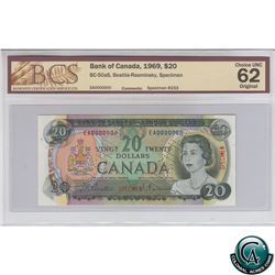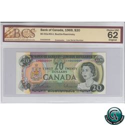 BC-50a-N5-ii 1969 Bank of Canada $20, Low Serial Number, Beattie-Rasminsky, S/N: EH0000009 BCS Certi