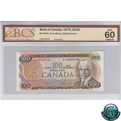 BC-60aA 1988 Bank of Canada Replacement $100, Thiessen-Crow, S/N: AJX1720176 PMG Certified CUNC-63 E