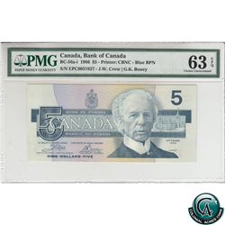 BC-56a-i 1986 Bank of Canada $5, Crow-Bouey, S/N: EPC0031927 PMG Certified CUNC-63 EPQ! Rare Prefix!