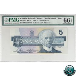 BC-56cA 1986 Bank of Canada Replacement $5, Bonin-Thiessen, S/N: FNX8287786 PMG Certified Gem UNC-66 EPQ!