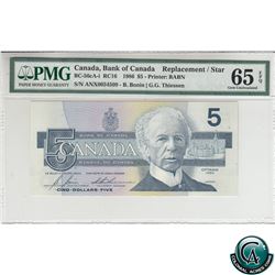 BC-56cA-i 1986 Bank of Canada Replacement $5, Bonin-Thiessen S/N: ANX0054509 PMG Certified Gem UNC-65 EPQ!