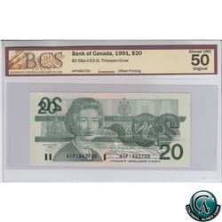 BC-58a-ii-E3-iii 1991 Bank of Canada $20, Offset Printing Error! Thiessen-Crow, S/N: AIP1862700 BCS Certified AU-50 Original! *Stunning error!*