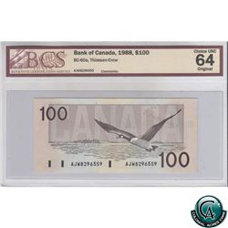 BC-60a 1988 Bank of Canada $100, Thiessen-Crow, AJW 8296559, BCS CUNC-64 Original