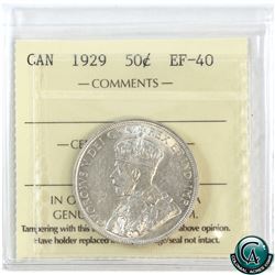 50-cent 1929 ICCS Certified AU-50. A bright flashy coin with hints of golden toning.