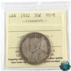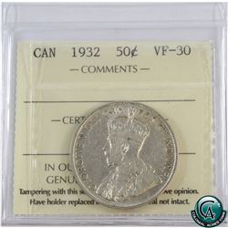 50-cent 1932 ICCS Certified VF-30. A nice mid-grade example of a Key Date coin.