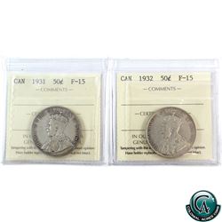 50-cent 1945 & 1946 ICCS Certified MS-63. 2pcs.