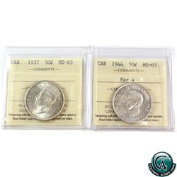 50-cent 1944 Near 4 & 1945 Cameo ICCS Certified MS-63. 2pcs