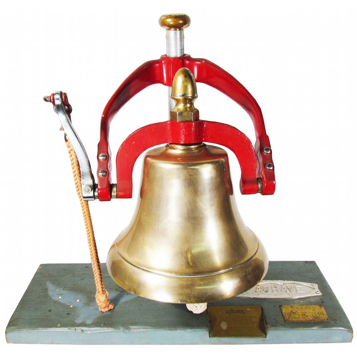 Fall River Brass Fire Apparatus Bell. Purported to have been on truck that fought the Great Fall River and Notorious Firestone Fires. These bells were used on 1900's motorized Fire Apparatus'. Seagrave plaque 2666. Excellent condition. 10 inch diameter X 12 1/2 inches tall.