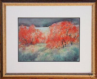 Elizabeth Welch ~Fall Trees~ Lithograph Framed A Bright wonderful lithographic print unavailable anywhere else... Piece is signed in the plate and is not numbered. Perfect Condition guaranteed. Framed in gold and double matted, plexiglass so as not to break.. 26 x 32 Framed