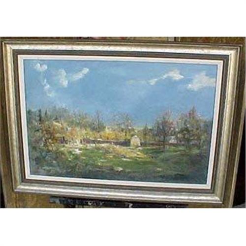 The canvas measures 20" high by 30" wide unframed. Framed it is 36" wid eby 26" high. The painting is signed. The condition is very good.