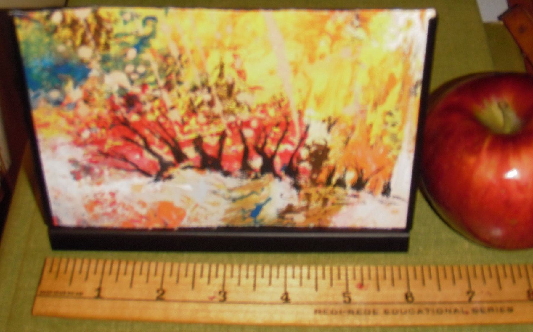 Small rare LangdonArt painting on canvas of Fall 39 with metal frame you can use on a table at home, desk at work, or on a wall and even as a paperweight ; start a collection of LangdonArt paintings or add to your LangdonArt collection, or give now as a wonderful gift !!!