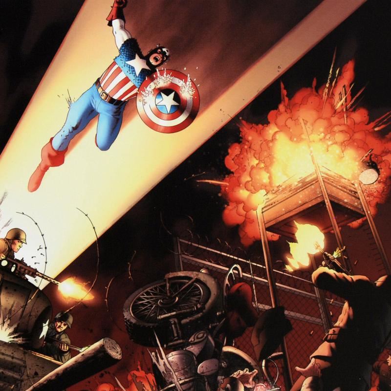 A piece of comic book history, this limited edition, from original art by John Cassaday, depicts a heroic Captain America. In 1997, shortly after his entrance into the world of comic book art, John Cassaday began to work Marvel Comics, working primarily on X-Men/Alpha Flight. He has also worked on Captain America, Secret War, and Union Jack. "Fallen Son: Death of Captain America #5" is a numbered limited edition giclee on canvas by John Cassaday presented by Marvel Comics, hand signed by the great Stan Lee! Includes Certificate of Authenticity! Measures approx. 24" x 18" (image).