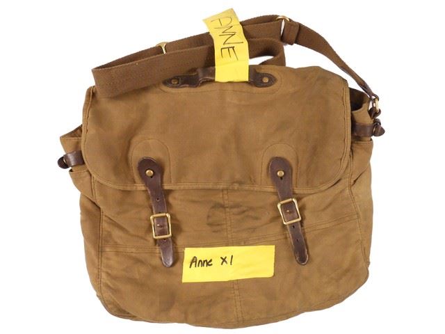 Anne Glass-Mason's (Moon Bloodgood) tan satchel-style canvas backpack with leather straps. Approx. 18" x 15".
