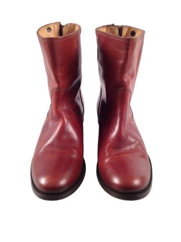 Anne Glass' (Moon Bloodgood) screen worn cognac brown leather "Frye" ankle boots with decorative snaps and zipper in back. Excellent condition. Includes wardrobe tag with Turner Broadcasting System #103467.