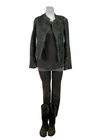 SPOILER ALERT! Season 5, Episode 9 - Anne Glass-Mason's (Moon Bloodgood) screen worn in stunt sequences, dark grey leather with Mandarin style collar two front pockets "Free People" jacket, slate grey long sleeve v-neck "James Perse" shirt, light grey scoop neck "James Perse" tank top, black fingerless gloves, black skinny "Rag & Bone" leggings, and black fur lined "UGG" knee high boots. Includes wardrobe tags and Turner Broadcasting System stickers #105013 and #103402.