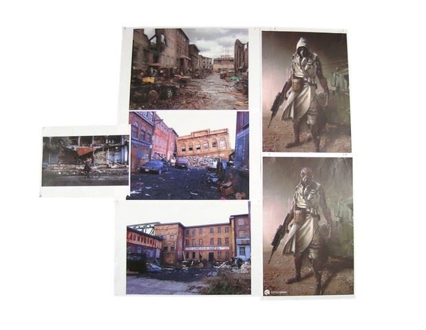 "Falling Skies" artwork and production photos collage. Approx. 11" x 17".