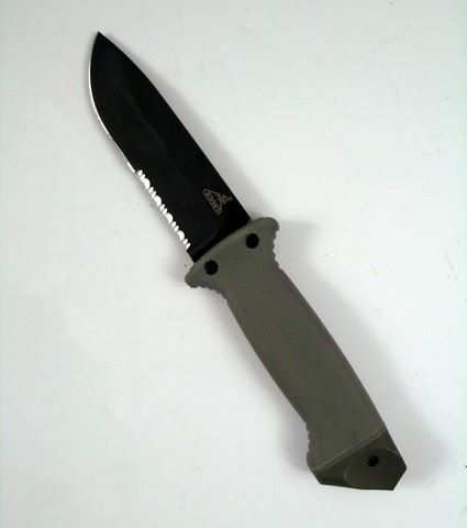 Ben Mason's (Connor Jessup's) black Gerber knife with green hilt and leg strap holster. This is a real knife with a sharp blade. Approx. 12" long.