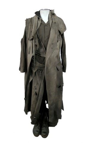 Cochise’s (Doug Jones) screen worn outfit in Season 4, Episode 4. Cochise epitomizes the Volm sensibility with his long trench coat, utility belt with front apron, and military motif jacket with oversized pockets and drawstrings common to every armed service life-form with a barrel chest. His cargo pants, with unusually stylish button-flaps for a Volm, provide added storage in classic green khaki. Cochise falls in love with everything human, so his “Rocky” boots just might be a sentimental nod to American cinema. A genius with detail, Cochise ensured that his attire has been properly “distressed” to show moderate wear and his wardrobe tag has remained intact.