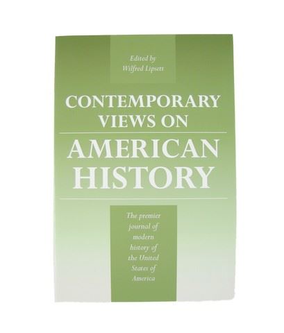 The book titled "Contemporary Views on American History" edited by Wilfred Lipsett, located in the Faculty Lounge. Approx. 9" x 6".