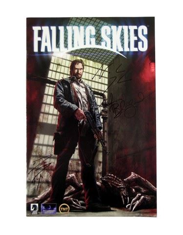 "Falling Skies" comic book, autographed by Noah Wyle, Moon Bloodgood, and Drew Roy. Approx. 7" x 10".