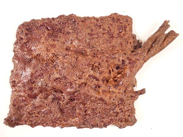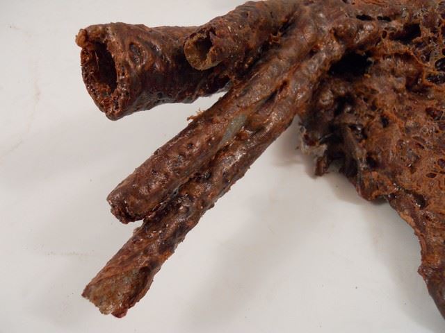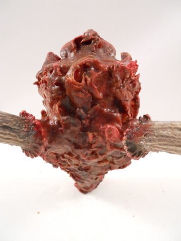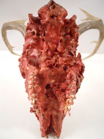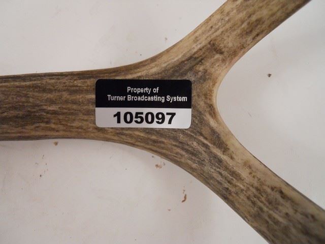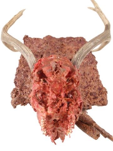 Burnt head and melted remains of small animal with antlers, used as set decoration. Turner Broadcasting System sticker #105097. Made of latex and wood. Head with antlers is approx. 16" x 18". Melted remains are approx. 14" x 15".