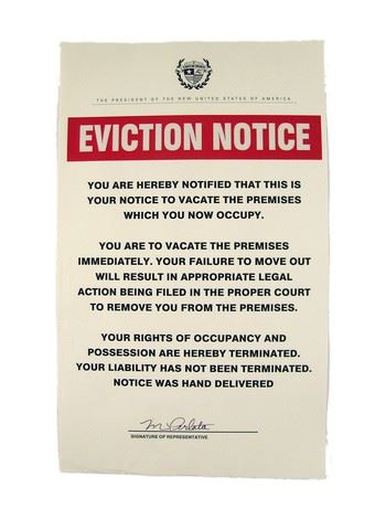 Episode 306 - Popetown Eviction Notice from The President of the New United States of America. (approx. 14" x 8 1/2")