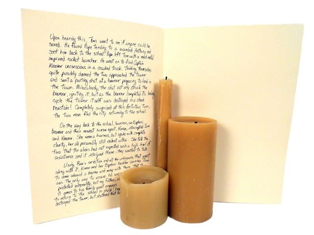 Falling Skies Hero Candles and Written Account of 2nd Mass History Movie Props