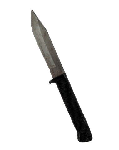 Fixed blade combat knife used by enigmatic antihero John Pope (Colin Cunningham) for emergency tactical situations, such as Skitter assassinations. Brown special effects brush strokes on the blade give the illusion that it has been muddied or bloodied from continued use. Rubber blade is 6" long, while the black texturized handle measures about 5 1/2". Made of plastic and rubber. Approx. 11 1/2" long.
