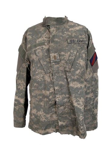 Season 5, Episode 8 - Lt. Demarcus Wolf's (Daren A. Herbert) screen worn, slightly bloody, green and grey digital camouflage with flag on the arms military jacket. Includes wardrobe tag.
