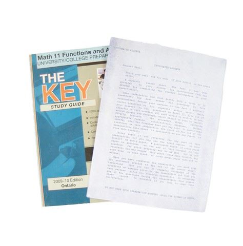 Matt Mason's (Maxim Knight) Math 11 Study Guide, 2009-10 Ontario Edition. Also, Matt's Integrated Algebra homework. Approx. 11 1/2" x 8 1/2")