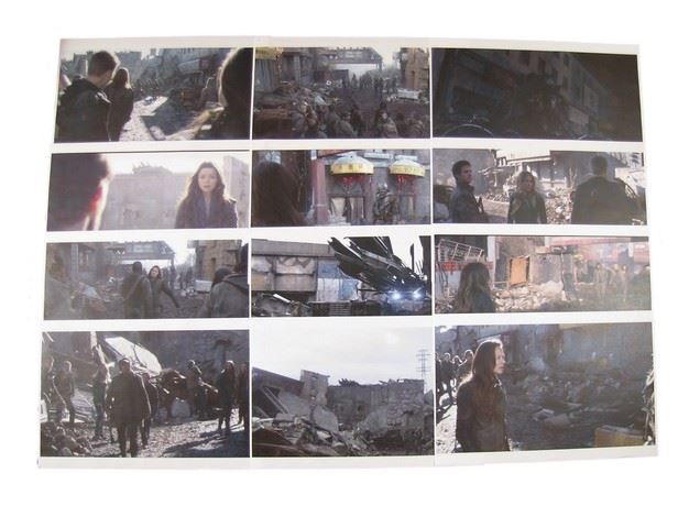 "Falling Skies" production photos collage, including Scarlett Byrne as "Lexi Mason" with brown hair and street clothes for her final "dream sequence" wherein she says farewell to her father. Approx. 11" x 17".