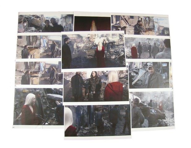 "Falling Skies" production photos collage, including Scarlett Byrne as "Lexi Mason" in her crimson red dress and robe. Approx. 11" x 17".