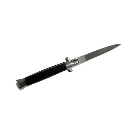 Season 1 - Black and silver switchblade used by the 2nd Mass militia. The simulated-steel blade comes to a fine point, and the black handle assures an easy grip. Fake screws add further realism to this prop switchblade. Made of rubber. Approx. 9" long.