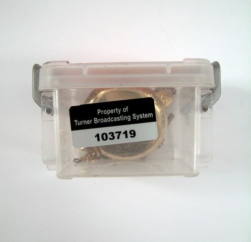 Season 1 - Tom Mason's (Noah Wyle's) white face 'Elgin' pocket watch with gold-colored casing and chain. Includes Turner Broadcasting System sticker #103719. Approx. 2 1/4" diameter.