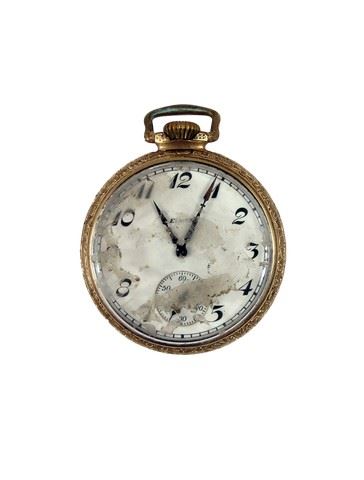 Season 1 - Tom Mason's (Noah Wyle's) white face 'Elgin' pocket watch with gold-colored casing, dirtied as if worn in battle. Approx. 2 1/4" diameter..