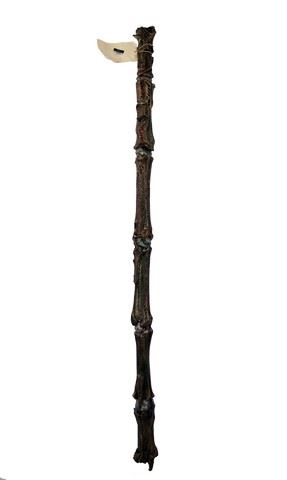Season 2, Episodes 1 & 10 - This Espheni pain stick, a reptilian-skinned metal rod joined by glowing joints, is the focal point in two riveting scenes whereby Tom (Noah Wyle) is tortured by servants of an Espheni Overlord. It first appears in Season 2, Episode 1 (7:15 minutes) when Tom awakens in an Espheni spaceship and suffers excruciating, visible electroshocks from a Skitter's pain stick. Tom returns the favor later, using the stick against the Skitter and his Overlord (18:51 minutes) in an act of defiance. In the most harrowing use of the pain stick (Season 2, Episode 10, 27:19 minutes) Karen (Jesse Schram) calmly tortures Tom and Colonel Weaver (Will Patton) with massive electrical blasts while her Overlord and captured 2nd Mass members watch. Realizing that Anne (Moon Bloodgood) is pregnant with Tom's child, Karen threatens to shock Tom's child unless Tom divulges how he discovered the secret Espheni plant. Prop (non-functioning). Made of metal and latex. Includes Turner Broadcasting System sticker #102105. Approx. 65" long.