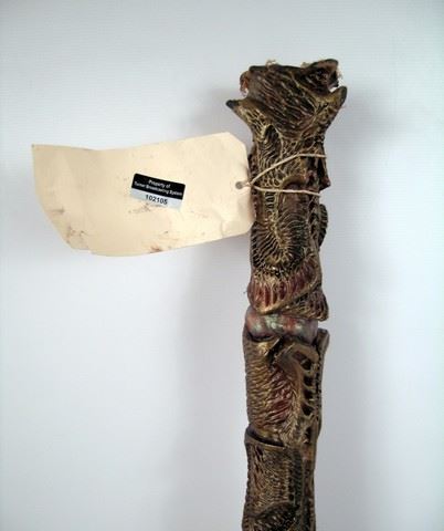 Premiere Props nor the consignor makes any warranties, expressed or implied, as to merchantability or fitness for a particular purpose, the correctness of the catalogue or other description of the physical condition, size, quality, rarity, importance, medium, provenance, exhibitions, literature, historical relevance of any property, intended use, condition of the property (including any condition report), correctness of description, origin, measurement, quality, rarity, importance, exhibition, relevance, attribution, source, provenance, date, authorship, condition, culture, genuineness, value, or period of the property. Additionally, neither Premiere Props nor the consigner makes any representation or warranty, expressed or implied, as to whether the Bidder acquires any copyrights, including but not limited to any reproduction rights of any property, or other intellectual property (including exhibition or reproduction rights) or whether the property is subject to any limitations such as ‘droit morale’ (moral rights) or other rights affecting works of art. Premiere Props does not make any representation or warranty as to title.