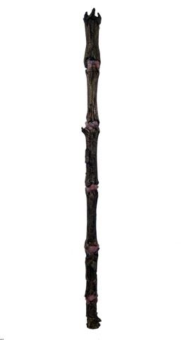 Season 2, Episodes 1 & 10 - This Espheni pain stick, a reptilian-skinned metal rod joined by glowing joints, is the focal point in two riveting scenes whereby Tom (Noah Wyle) is tortured by servants of an Espheni Overlord. It first appears in Season 2, Episode 1 (7:15 minutes) when Tom awakens in an Espheni spaceship and suffers excruciating, visible electroshocks from a Skitter's pain stick. Tom returns the favor later, using the stick against the Skitter and his Overlord (18:51 minutes) in an act of defiance. In the most harrowing use of the pain stick (Season 2, Episode 10, 27:19 minutes) Karen (Jesse Schram) calmly tortures Tom and Colonel Weaver (Will Patton) with massive electrical blasts while her Overlord and captured 2nd Mass members watch. Realizing that Anne (Moon Bloodgood) is pregnant with Tom's child, Karen threatens to shock Tom's child unless Tom divulges how he discovered the secret Espheni plant. Prop (non-functioning). Made of metal and latex. Approx. 65" long.