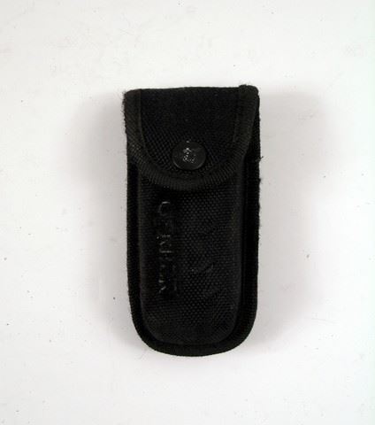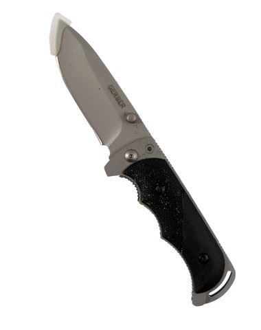 Season 2 - Real knife with sharp 'Gerber' blade used in combat by antihero John Pope (Colin Cunningham). Easily concealed and ideal for self-protection on dark Skitter-ridden nights, the 3" blade with plastic removable safety tip folds into a black, scalloped sure grip handle housed in dulled metal frame. Silver and black. Approx. 8" long. 'Gerber' carrying case included. This is a real knife with a metal blade. Approx. 8" long.