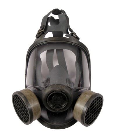 Season 4, Episode 9 (12:01 minutes) - When Cochise (Doug Jones) brings 2nd Mass members to a Volm supply depot with high levels of toxicity dangerous to humans, he instructs them to wear gas masks for protection. This dual canister 'North' one-piece gas mask worn by Anne Glass (Moon Bloodgood) has green and black silicone rubber construction and a full face piece of clear plastic.