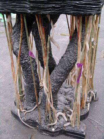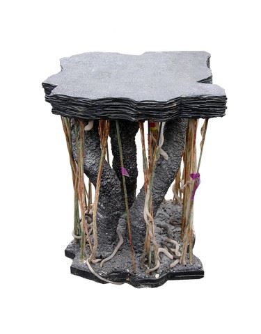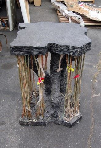 This Espheni Beamer Airship control console first appears in Season 4, Episode 10 (3:30 minutes), when Matt (Maxim Knight) sneaks inside the Espheni Beamer that crashed in Chinatown. Matt plays with the controls, lurching the Beamer into a nearby truck - startling the adults outside the Airship. Tom (Noah Wyle), Anthony (Mpho Koaho), Cochise (Doug Jones), and Dingaan (Treva Etienne) rush inside, as each contributes to theories of how this newly discovered Espheni control console operates, and Tom takes lessons (Season 4, Episode 10, 13:00 minutes) in manipulating the tendrils to control thrust, pitch, yar, and roll. Tom's exploration of the controls serves him well, as he must manipulate the control console tendrils in an attempt to keep his crippled Espheni Beamer Airship from spinning out of control on his return trip from the moon to earth (Season 4, Episode 12, 34:30 minutes). Hard black resin and wood, with multi-colored tendrils. Approx. 35" x 22".