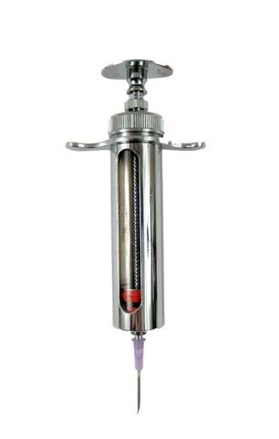 Season 4, Episodes 11 & 12 - Season 4, Episode 11 (16:34 minutes) - In case Tom Mason (Noah Wyle) is captured during his mission with Lexi (Scarlett Byrne) to destroy an Espheni power-generating plant on the moon, Hal Mason (Drew Roy) hands Tom a Volm syringe with lethal poison to use as a last-resort suicide injection. Surprised, but ever pragmatic, Tom accepts it. In a climactic scene in Season 4, Episode 12 (18:40 & 21:40 minutes) a seething Espheni Overlord the humans call "Scorch" (Mark Gibbon) finally gets his chance to for payback against Tom. Since Tom had previously blowtorched his face, "Scorch" decides to fulfill his vendetta by searing Lexi's face with the lava stone right in front of Tom. Trapped inside the Overlord's Beamer Airship, Lexi and Tom improvise. Lexi stalls for time with a trumped-up story, signaling Tom to act. As Lexi defiantly screams, "I am Espheni!" the Overlord carves his volcanic lava stone into her face. Meanwhile, Tom leaps from behind to stab "Scorch" with a syringe full of deadly poison. Metal syringe with needle. Approx. 9" long.