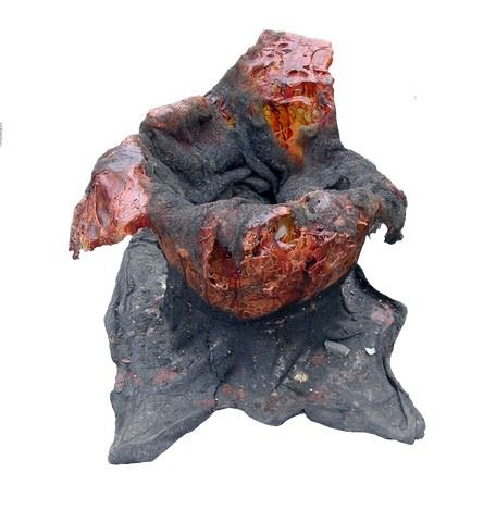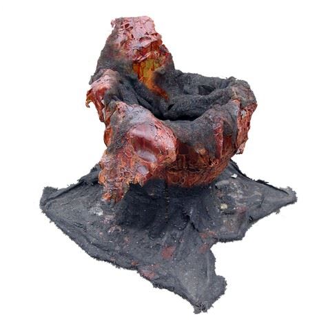 SPOILER ALERT! Season 5 -Series Finale - Hatched Espheni mottled-orange egg with charcoal black ooze dripping out to the ground, that has solidified like a cooled lava flow. Made of hard resin and paper mache. Approx. 30 1/2" x 37".