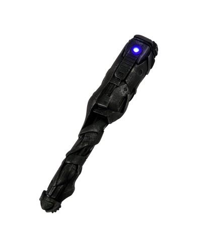 Season 5, Episode 4 (19:42 minutes) - In the first human-Volm operation in history, Anne Glass-Mason (Moon Bloodgood) uses this Volm precision surgical laser as a scalpel to open the resilient exoskeletal sheath (skin) of Cohcise's father, Waschak-Cha'ab (John H. Mayer) during transplant surgery. The blue laser "scalpel" makes an 8-inch incision in Waschak-Cha'ab's abdomen, allowing Anne to remove one of his two healthy kidney-like organs for successful transplant into Cochise (Doug Jones), whose sole kidney-like organ is failing. This black Volm surgical "scalpel" with 6-petawatt (6-quadrillion watt) laser has hand-forged twisting pieces reinforcing the wand and circular pieces at the handle for intricate manipulation. Pressing the blue light at the top unleashes 180 joules of energy with each pulse. LED lighting built into base. Made of hard plastic. Prop (non-functioning). Turner Broadcasting System sticker #105088 not included. Approx. 13" long.