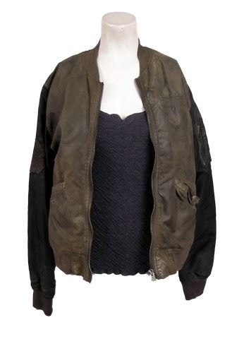 Anne Glass-Mason's (Moon Bloodgood) screen worn outfit in Season 5, Episode 1. Anne is a layering fanatic but can play it minimalist as well. Here she simply wears a two-pocketed khaki bomber jacket with black sleeves and orange lining, with a charcoal long-sleeved "Henley" textured shirt. Anne's outfit has been "distressed" by the wardrobe department for filming.