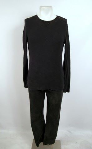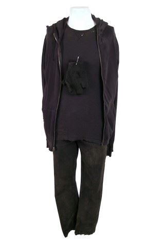 Ben Mason's (Connor Jessup) screen worn outfit in Season 5, Episodes 8, 9, & 10. Moderate wear. Ben Mason’s ability to bridge the Espheni and human worlds transcends his physical “spikes” and fuels his spiritual quest to make sense of a universe in turmoil. Likewise Ben’s singular attire embraces the independent outsider that he has become, as evidenced by his black "Splendid Mills" hoodie sweatshirt, long-sleeved "Armani Exchange" crew neck shirt, and black “Joe’s the Brixton” SoCal classic jeans. Ben also wears the requisite post-apocalyptic cut-off gloves, in a black basketweave knit. Ben Mason's outfit has been generously "distressed" to show moderate wear.